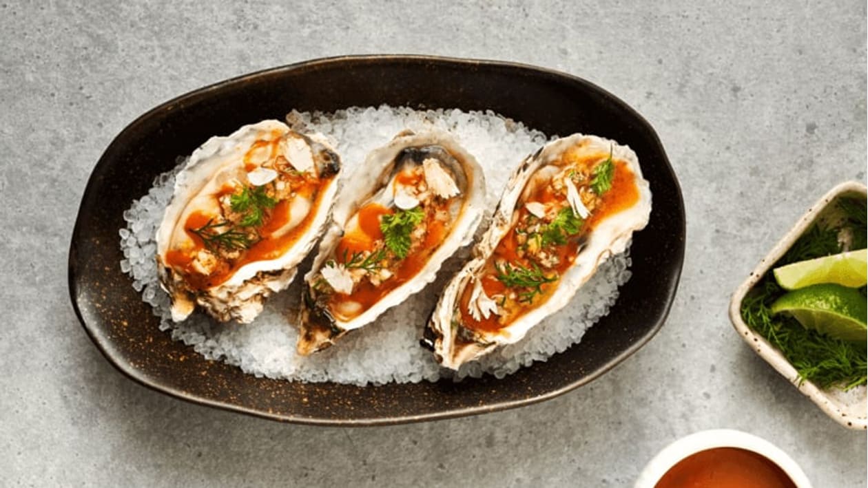 "Charred" Bloody Mary Oysters